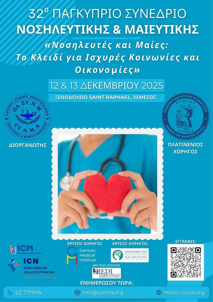 On December 13, 2025, Dr Joanna Menikou, Assistant Profession at the Department of Nursing of our University, participated in the 32nd Cyprus Nursing and Midwifery Conference. Her presentation focused on the findings of a study conducted among Cypriot parents, aiming to explore levels of Health Literacy and their association with parental Knowledge, Attitudes, and Practices regarding the administration of antibiotic medication to children. The inappropriate use of antibiotics, combined with inadequate levels of Health Literacy, constitutes a significant pubic health challenge, highlighting the need for the development and implementation of targeted educational interventions.